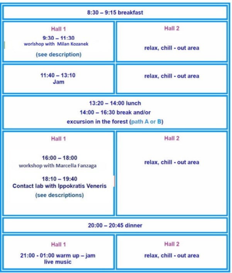 In the fees are included all the workshops, all the events, all the meals, single bed in dormitory, sheets, towels and blankets. (places are limited)